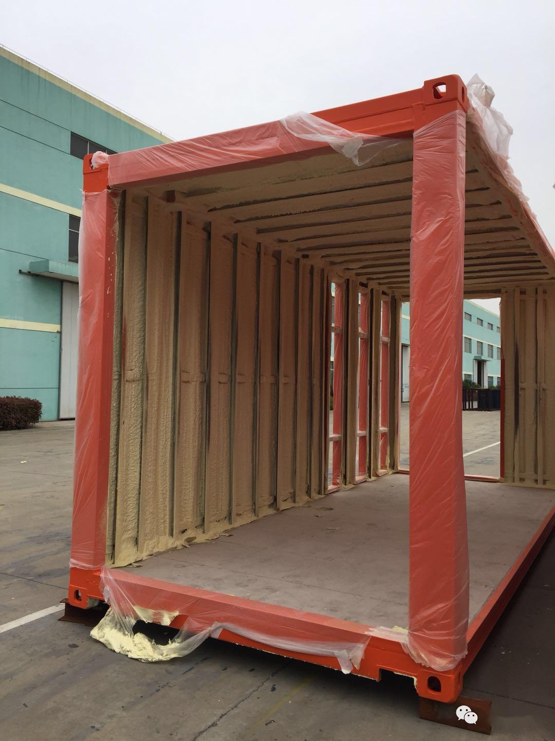 集裝箱保溫隔音處理,一般是 集裝箱內部噴涂聚氨酯泡沫,加裝50-100mm的玻璃巖棉板,以用來防潮防腐,隔熱隔音。南方室內加裝空調、北方則加裝地暖等;外層覆裝飾材料,比如歐松板、石膏板、水泥纖維板、高分子裝配板等。