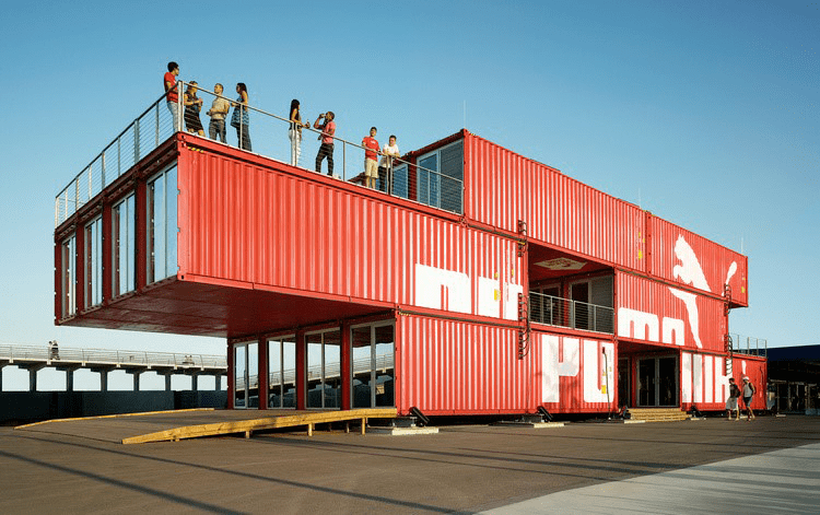隈研吾手下的星巴克集裝箱咖啡店,清新簡(jiǎn)潔;而LOT-EK設(shè)計(jì)的彪馬城,則給集裝箱暈上熱情奔放之感。